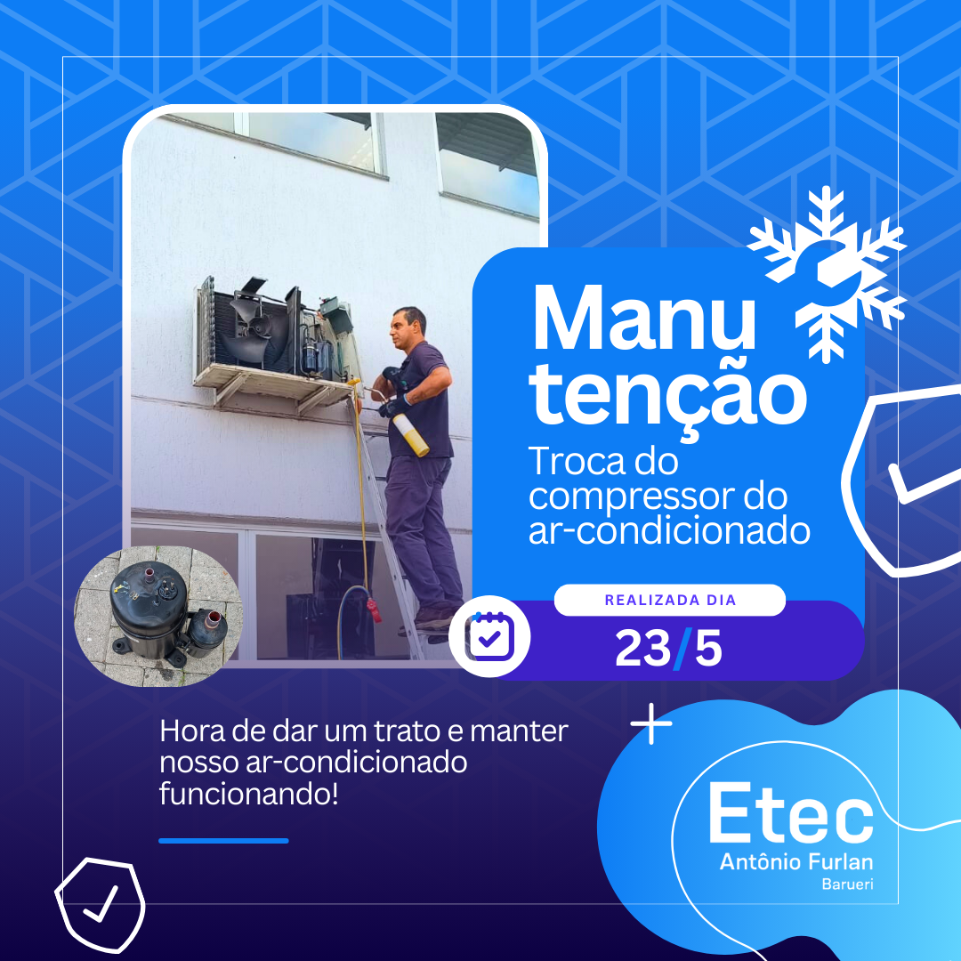 Realizamos a substituição do compressor do ar-condicionado por um novo, garantindo mais conforto para nossos(as) alunos(as), professores(as) e colaboradores(as)!