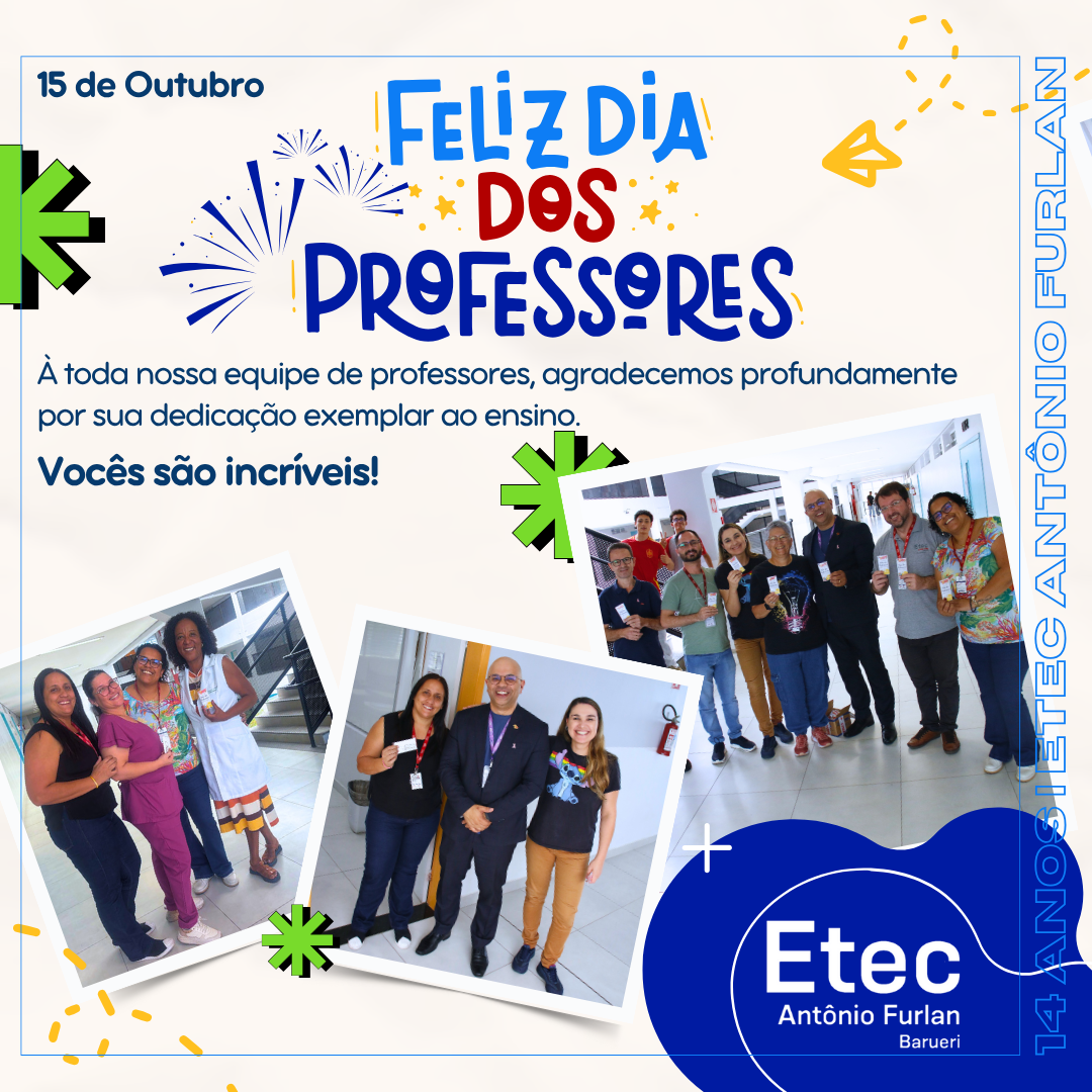 A direção da Etec Antônio Furlan agradece profundamente a todos(as) os(as) professores(as) por sua dedicação, compromisso e paixão pelo ensino. 🙏✨