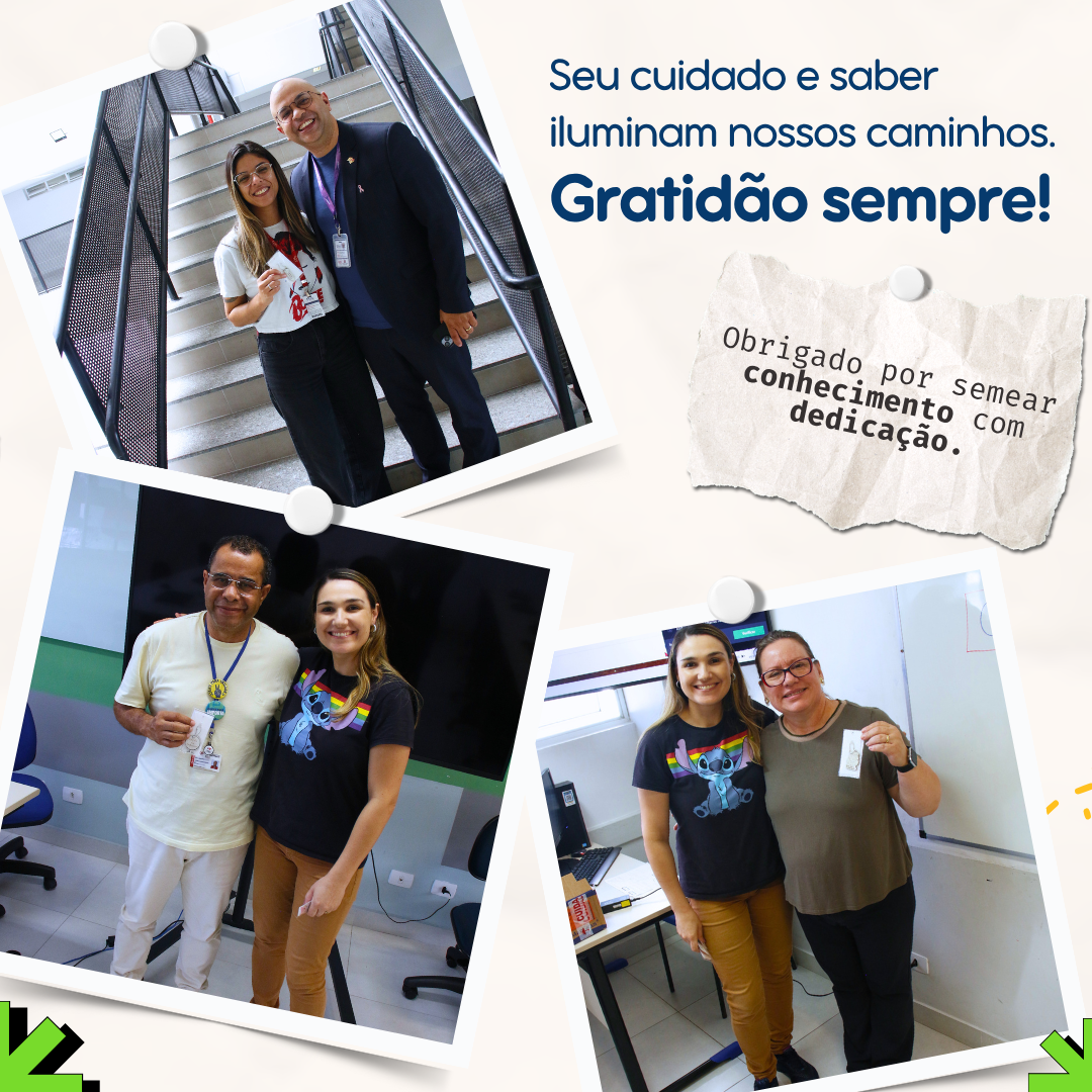 No carrossel de fotos, mostramos uma pequena parcela de nossos professores. Infelizmente, não conseguimos registrar todos, mas cada um é igualmente importante em nossa jornada. 📸✨