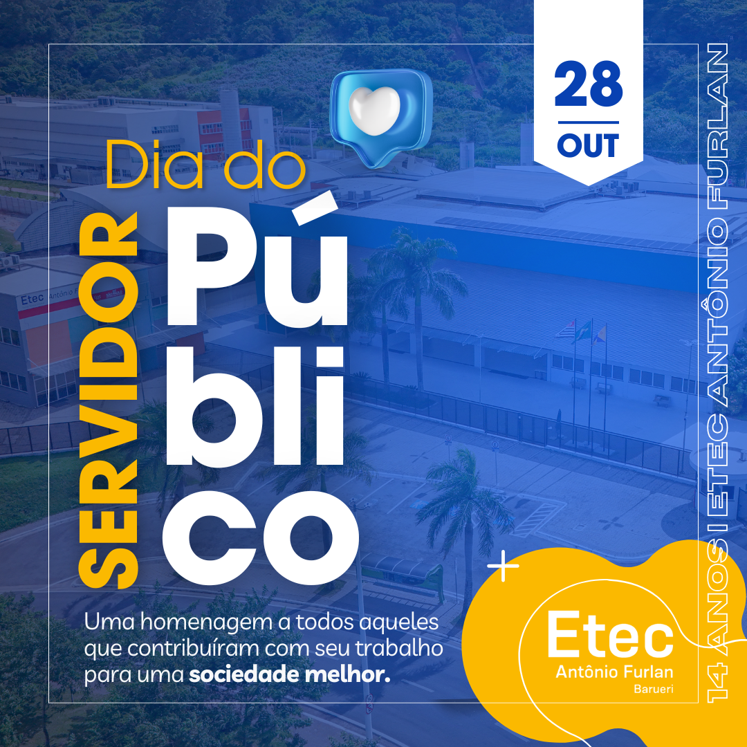 A Etec Antônio Furlan parabeniza todos os servidores públicos e agradece por seu trabalho incansável em prol do bem-estar coletivo. 👏💙