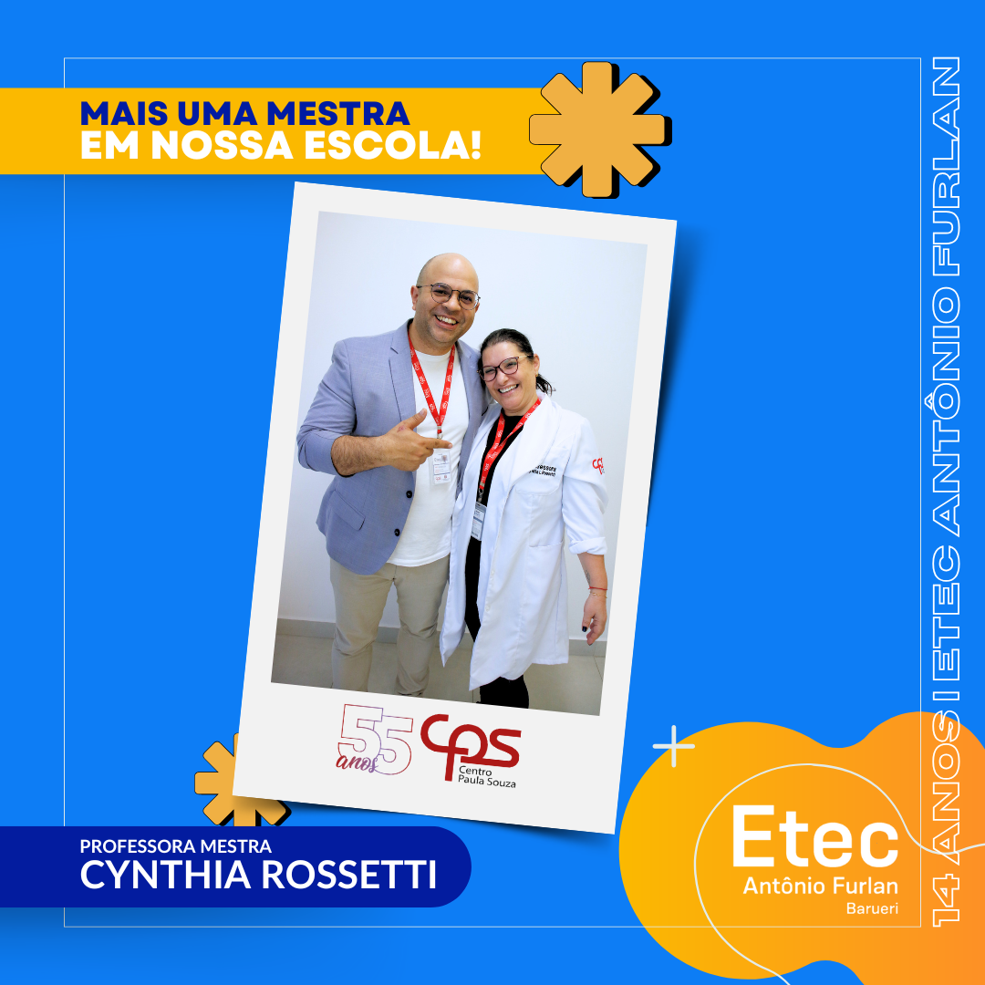 A Direção da Etec Antônio Furlan parabeniza a professora Cynthia (@cynthia.rosseti) por mais essa vitória, que representa dedicação, esforço e amor pela educação. Estamos muito orgulhosos de tê-la como parte da nossa equipe! Que esse seja apenas o início de muitas outras conquistas! 👏🎉