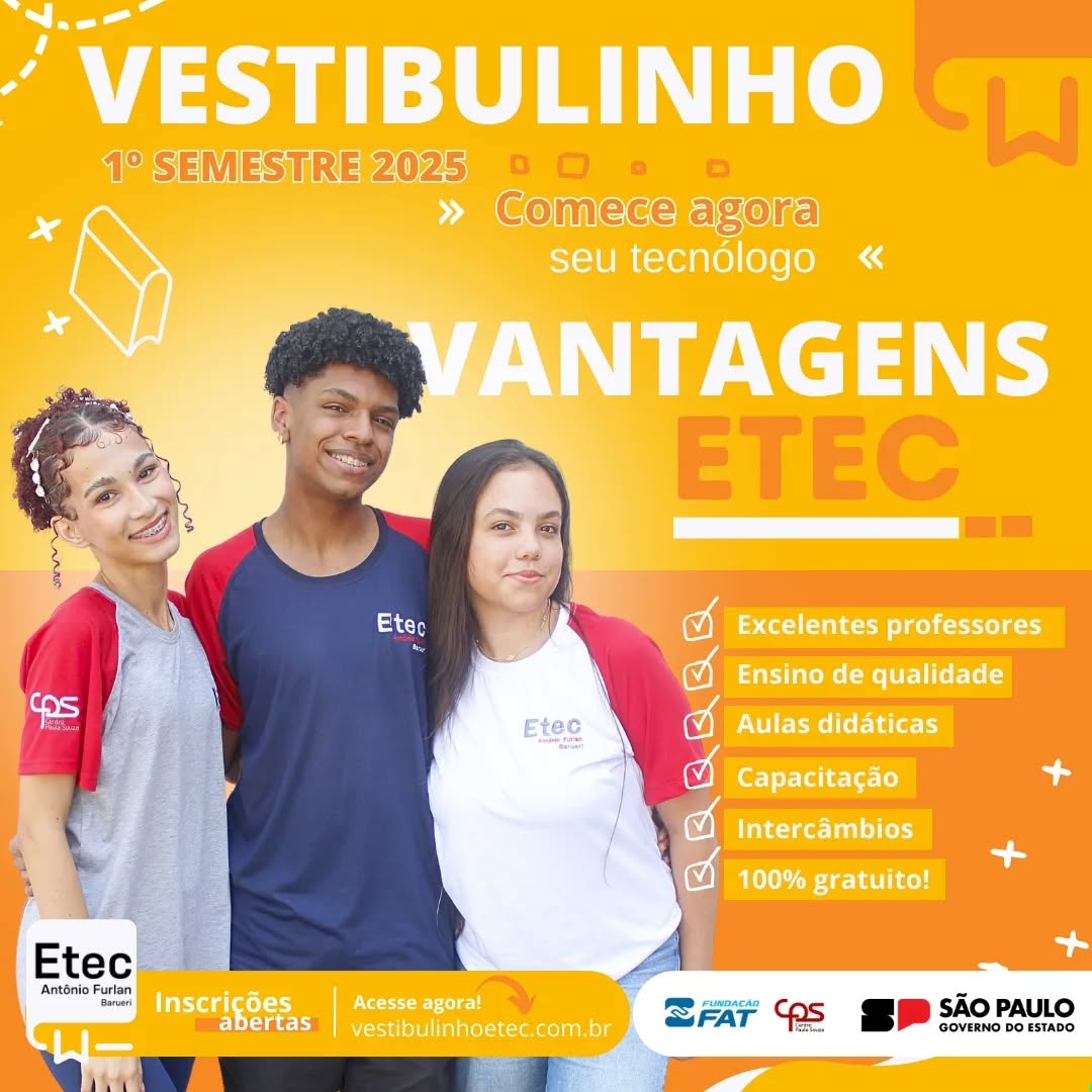🌐 Inscreva-se já no site: www.vestibulinhoetec.com.br