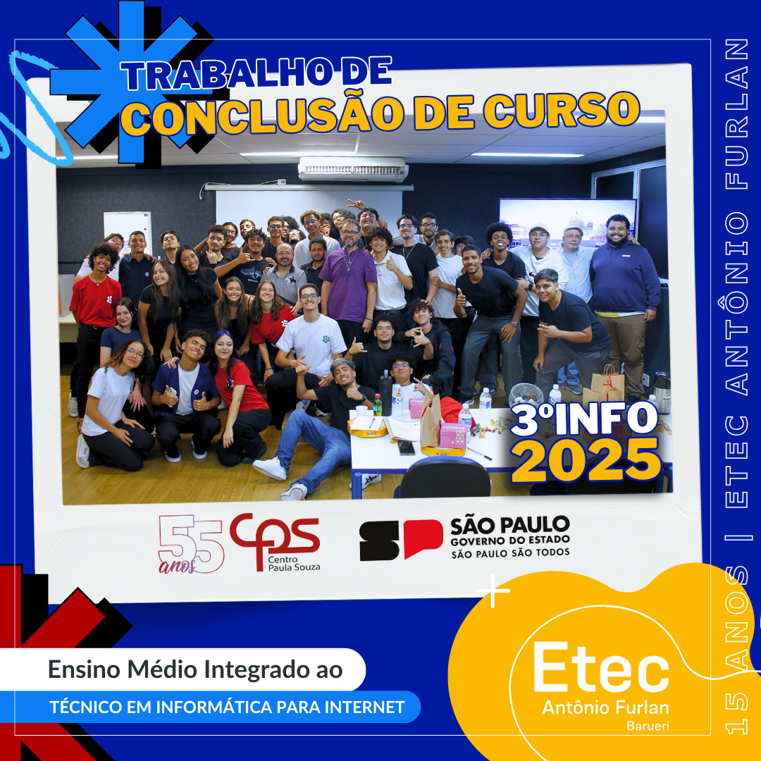 Foi realizada a Apresentação do Trabalho de Conclusão de Curso da turma do Ensino Médio Integrado ao Técnico em Informática para Internet (@info_3rao), um momento de grande orgulho que reflete a inovação e o domínio técnico de nossos(as) alunos(as). ✨