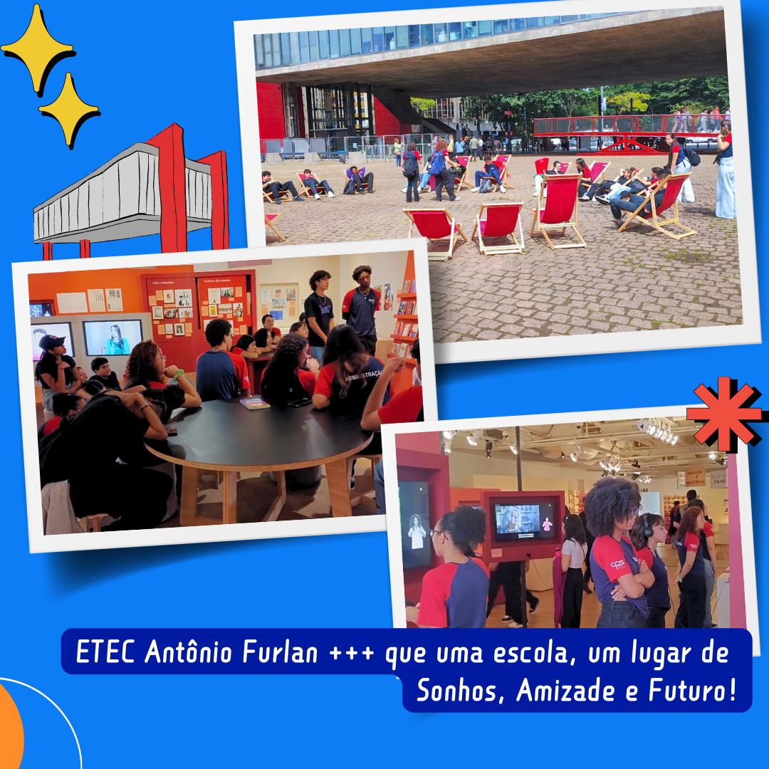 Durante o passeio, os(as) estudantes também tiveram a oportunidade de visitar a 67ª edição do programa Ocupação Itaú Cultural, que nesta edição homenageia a arte-educadora, professora e pesquisadora Ana Mae Barbosa 🎨. Além disso, passaram pelo tão famoso vão do MASP – Museu de Arte de São Paulo, símbolo da cultura paulistana e um dos pontos turísticos mais emblemáticos da cidade. 🖼️