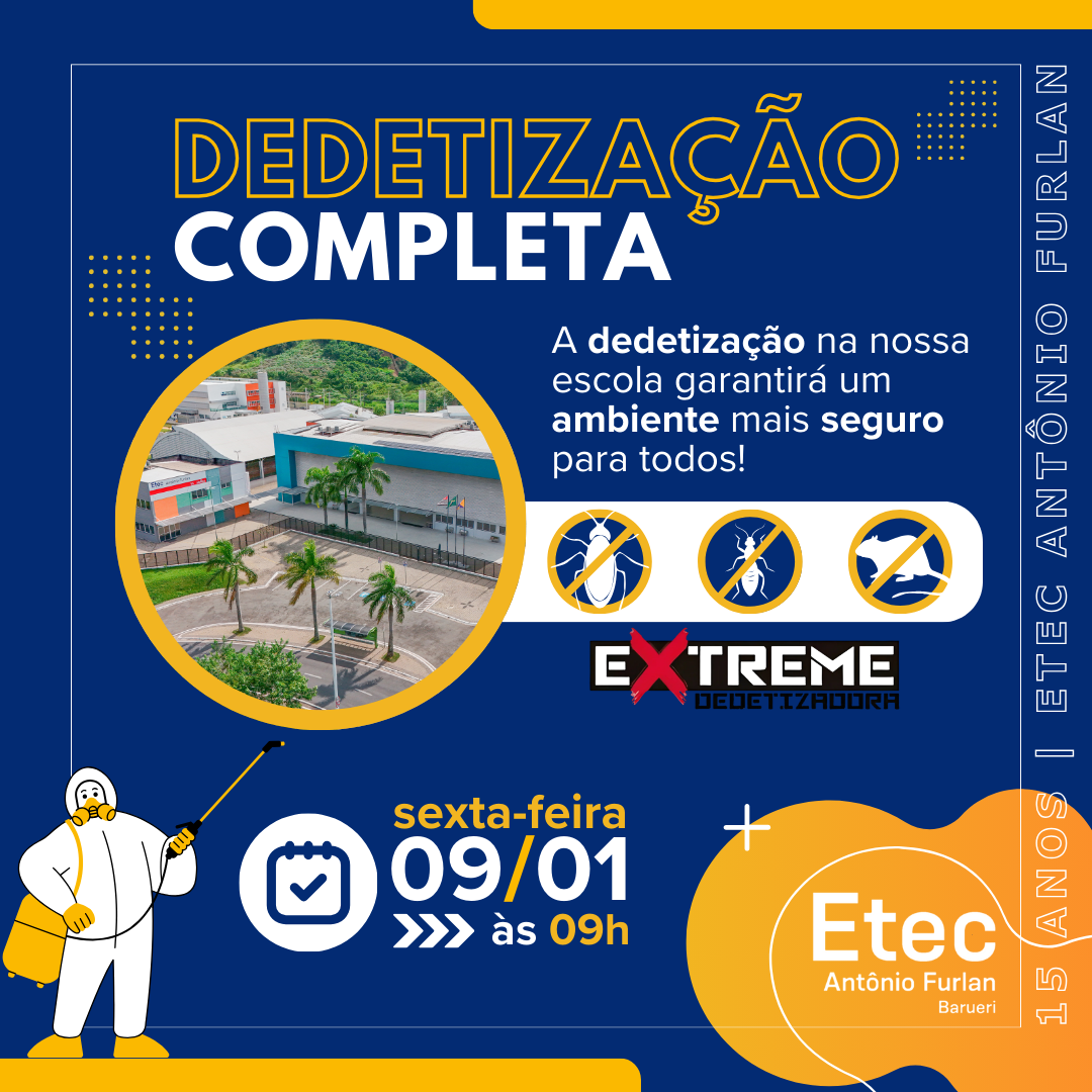 Serão realizados os procedimentos de desinsetização, desratização e descupinização em toda a unidade pela empresa Extreme Dedetizadora (@extremededetizadora). 🐜🚫