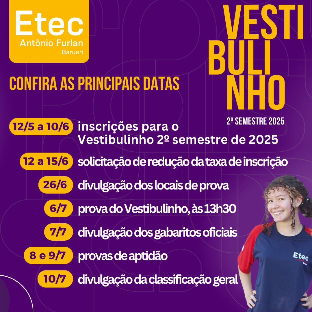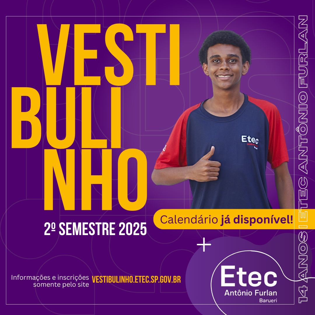 Calendário do Vestibulinho das Etecs – 2º semestre de 2025