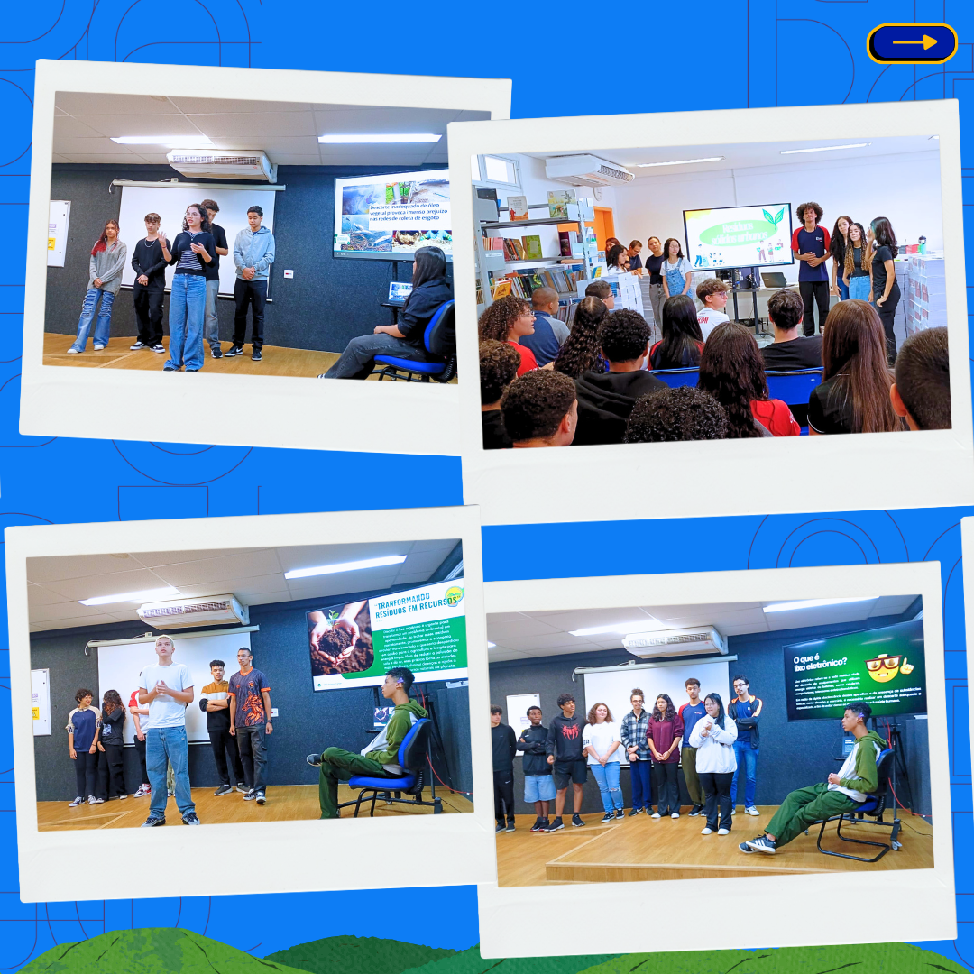 Os estudantes dos 2ºs anos prepararam apresentações incríveis para os alunos dos 1ºs anos, trazendo discussões vitais sobre Consciência Ambiental. Foram abordados 5 temas fundamentais para uma rotina mais sustentável: