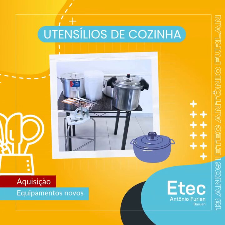 🍽️ Novidades na Cozinha da ETEC! 🍽️ Essa semana, nossa ETEC foi equipada com novos utensílios de cozinha! Estamos sempre em busca de oferecer o melhor suporte para nossos alunos, professores e colaboradores 👩🍳👨🍳✨