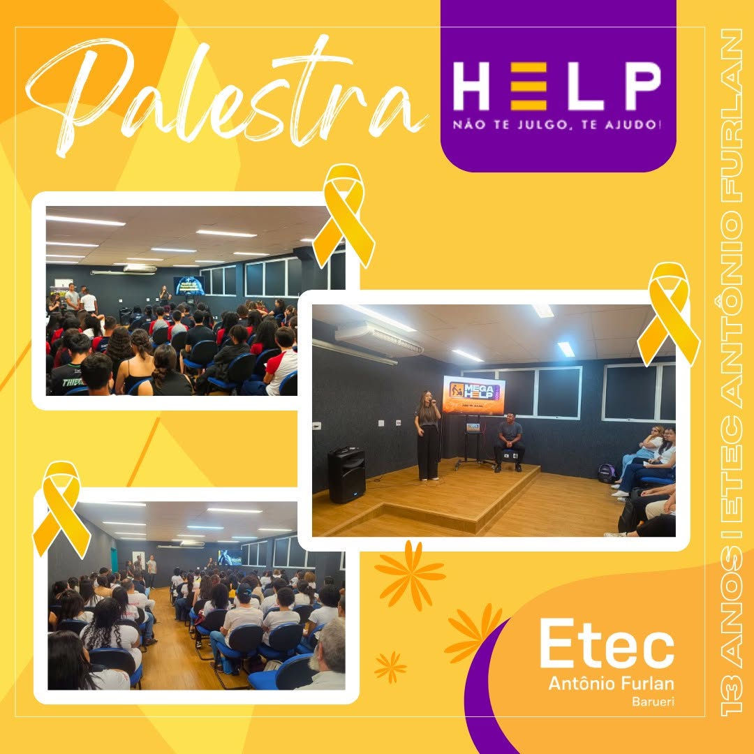 No último dia 09 de setembro, tivemos o privilégio de receber em nossa ETEC o projeto “Help, Não Te Julgo Te Ajudo” (@help.fju), com a palestra intitulada “Batalha de Pensamentos”. O lema do grupo, “não te julgo, te ajudo”, trouxe uma mensagem poderosa de apoio, acolhimento e saúde mental para todos os participantes. 🧠💛