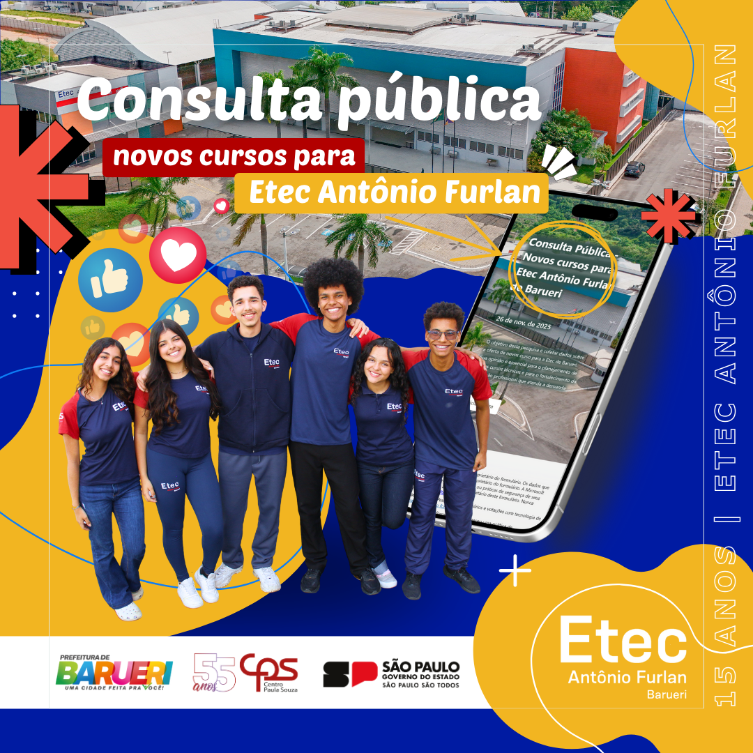 A Etec Antônio Furlan está realizando uma importante pesquisa de mercado com o objetivo de identificar as demandas da região e planejar a oferta de novos cursos técnicos alinhados às necessidades do mercado de trabalho de Barueri e entorno.