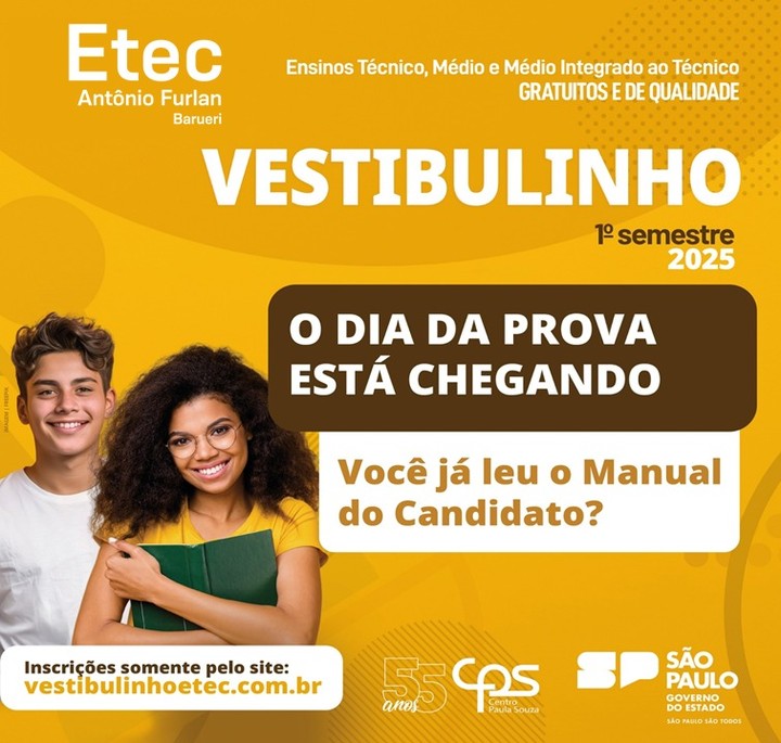 O Manual do Candidato é o seu guia para o exame. Nele você encontrará todas as orientações para se preparar para o processo seletivo das Etecs do #CentroPaulaSouza.